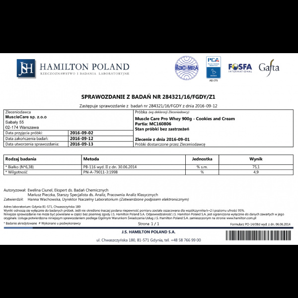 Wartości odżywcze Wartość energetyczna Tłuszcz w tym kwasy tłuszczowe nasycone Węglowodany w tym cukry Błonnik Białko Sól Składnik aktywny koncentrat białek serwatki |
