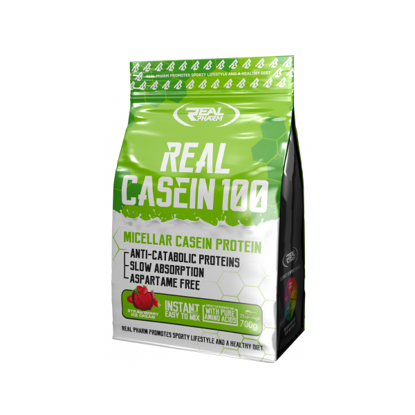 REAL CASEIN 100 to suplement diety w proszku, przeznaczony zarówno dla profesjonalnych sportowców jak i osób amatorsko uprawiających sport, uzupełniający ich dietę w białko. Białko przyczynia się do wzrostu masy mięśniowej oraz pomaga w utrzymaniu zdrowych kości.