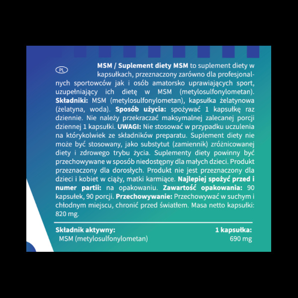 To jeden z najlepszych sposobów na osiągnięcie wymarzonej formy fizycznej. Produkt sprawdza się przy treningach siłowych, jak i wytrzymałościowych. Bardzo często sięgają po niego również przedstawiciele dyscyplin szybkościowych. Warto docenić w tym przypadku uniwersalność i błyskawiczne działanie. MSM ma za zadanie wspierać odcinki układu kostno-stawowego.