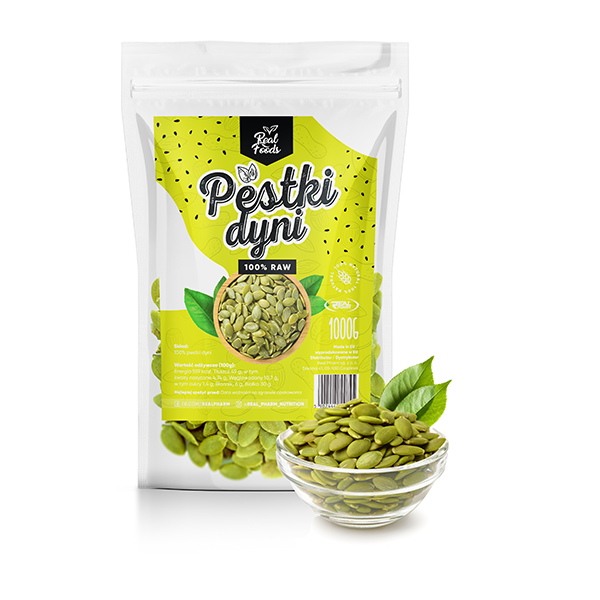 Pestki dyni najwyższej jakości, zawierają witaminy A, C, E, sole mineralne: magnez, fosfor, żelazo, cynk.