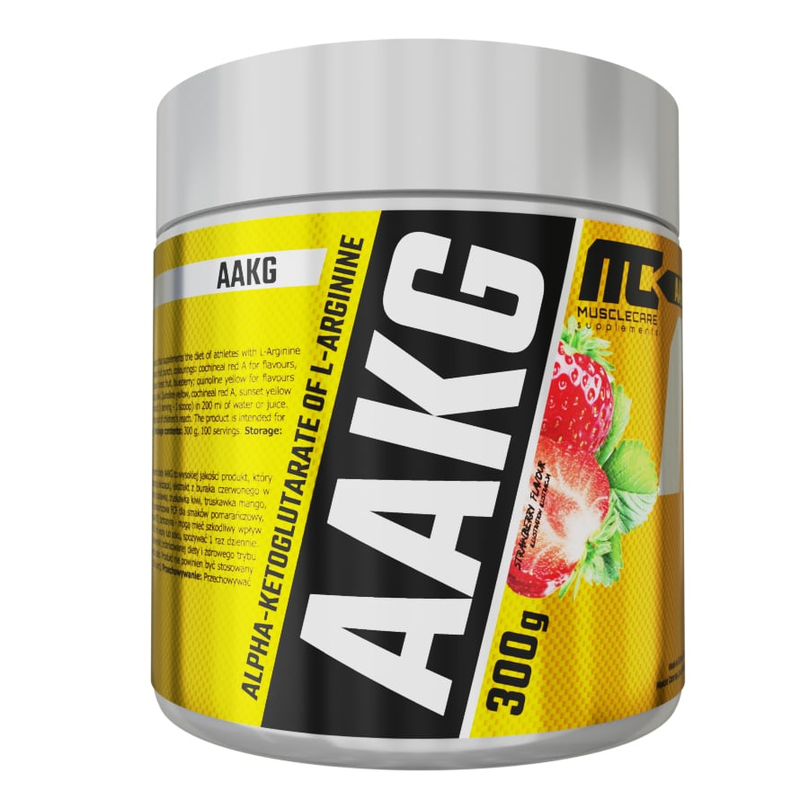Muscle Care AAKG 300 g to wysokiej jakości preparat zawierający argininę alfa-ketoglutaran (AAKG) – skuteczne połączenie L-argininy i alfa-ketoglutaranu. Produkt został stworzony z myślą o osobach aktywnych fizycznie, które chcą poprawić wydolność, siłę, regenerację i efekt tzw. „pompy mięśniowej” podczas treningu.