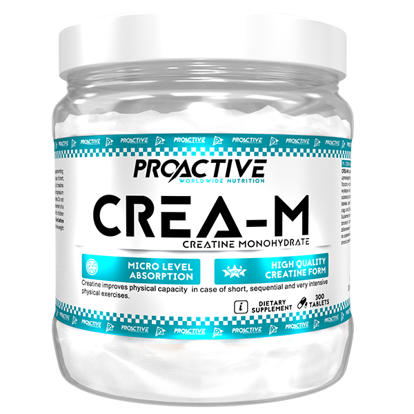 ProActive CREA-M to preparat zawierający monohydrat kreatyny, jedną z najbardziej efektywnych form kreatyny, która jest łatwo przyswajalna (93%). Pomaga zwiększyć siłę, wytrzymałość i produkcję ATP, dostarczając mięśniom energię. Produkt nie zawiera cukru, metali ciężkich ani szkodliwych dodatków.