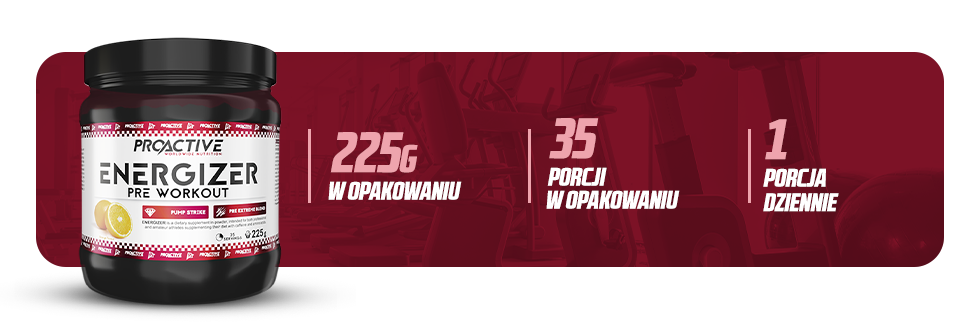 ProActive Energizer 225g to kompleksowa formuła przedtreningowa. Idealna dla osób aktywnych fizycznie, które potrzebują dodatkowej energii i motywacji do działania.