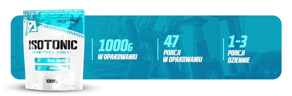 ProActive Isotonic 1000g to nowoczesny napój izotoniczny, który efektywnie nawadnia ciało, uzupełnia elektrolity i zapewnia energię podczas intensywnych treningów. Dzięki swojej specjalistycznej formule izotonicznej, pomaga utrzymać właściwą równowagę wodno-elektrolitową, zapobiegając odwodnieniu i zmniejszając uczucie zmęczenia. To idealny wybór dla sportowców i osób aktywnych, wspomagający regenerację oraz poprawiający wydolność organizmu.