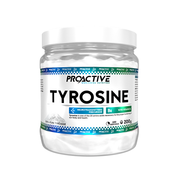 ProActive Tyrosine 200g to preparat z L-tyrozyną, aminokwasem wspomagającym pracę mózgu, koncentrację i radzenie sobie ze stresem. Wspiera zarówno wydolność fizyczną, jak i umysłową.