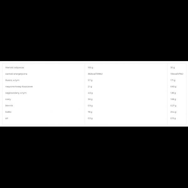 | Wartość energetyczna | 382 kcal / 1598 kJ | 115 kcal / 479 kJ |