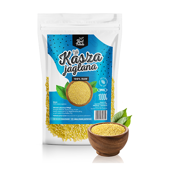 Kasza jaglana powstaje z łuskanych ziaren prosa, jednego z najstarszych zbóż znanych ludzkości. Jest lekkostrawna, wysokoenergetyczna i naturalnie bezglutenowa, dzięki czemu świetnie nadaje się dla osób z wrażliwym układem pokarmowym. Stanowi cenne źródło witamin z grupy B, niacyny, błonnika, białka oraz minerałów takich jak magnez, żelazo, fosfor, cynk i miedź. Dodatkowo zawiera krzem, który pozytywnie wpływa na kondycję skóry, włosów, paznokci i stawów.