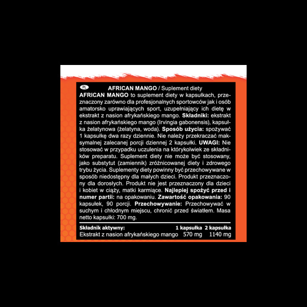 Produkt przeznaczony zarówno dla profesjonalnych sportowców jak i osób amatorsko uprawiających sport, uzupełniający ich dietę w ekstrakt z nasion afrykańskiego mango.