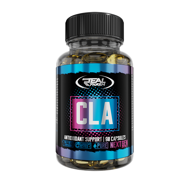 Real Pharm - CLA 90 kapsułek to preparat zawierający sprzężony kwas linolowy (CLA), naturalny składnik występujący głównie w tłuszczach zwierzęcych i roślinnych. CLA jest popularnym środkiem wspierającym procesy redukcji tkanki tłuszczowej oraz poprawy kompozycji ciała.