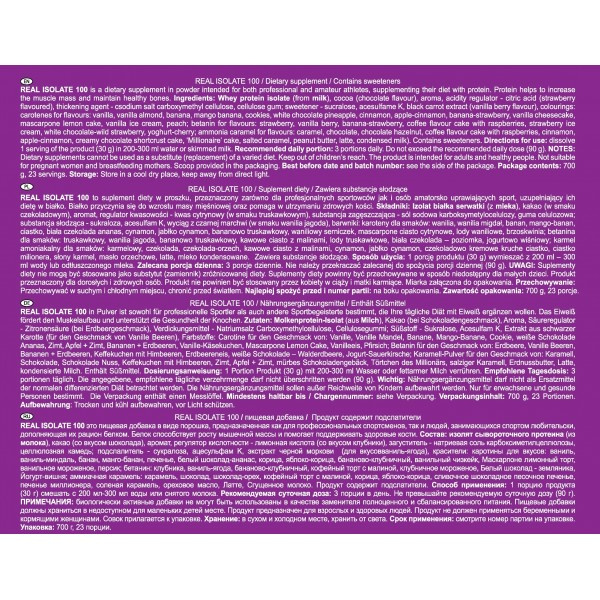 REAL PHARM REAL ISOLATE 100 to izolat białka serwatkowego, który wyróżnia się niską zawartością tłuszczu i węglowodanów, co czyni go idealnym wyborem dla osób dążących do budowania masy mięśniowej oraz redukcji tkanki tłuszczowej. Produkt ten nie zawiera zbędnych dodatków, sztucznych barwników ani konserwantów, dzięki czemu jest bezpieczny i naturalny. Izolat białka serwatkowego jest jednym z najbardziej wartościowych źródeł białka, które wspomaga regenerację po wysiłku fizycznym, przyspiesza procesy anaboliczne oraz wspiera budowanie czystej masy mięśniowej.