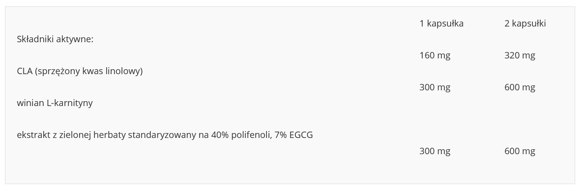| CLA (sprzężony kwas linolowy) | 160 mg | 320 mg |